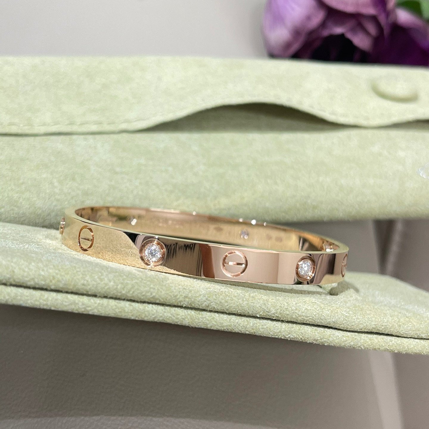 Cartier’s wide, four-diamond bangle, a classic everyday piece