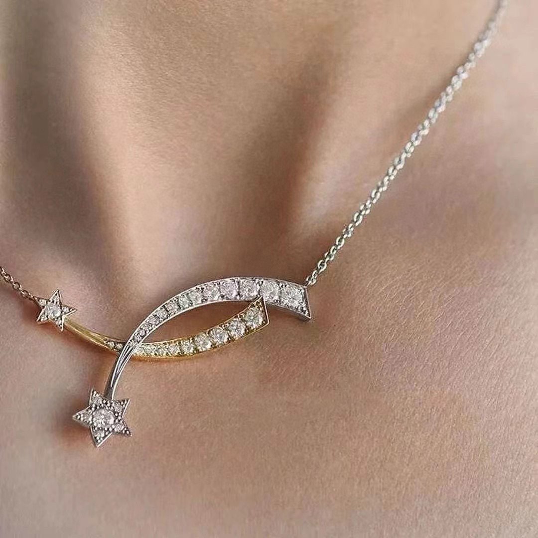 Chanel Comete Collection Meteor Cross Two-Tone Necklace, Romantic and Beautiful