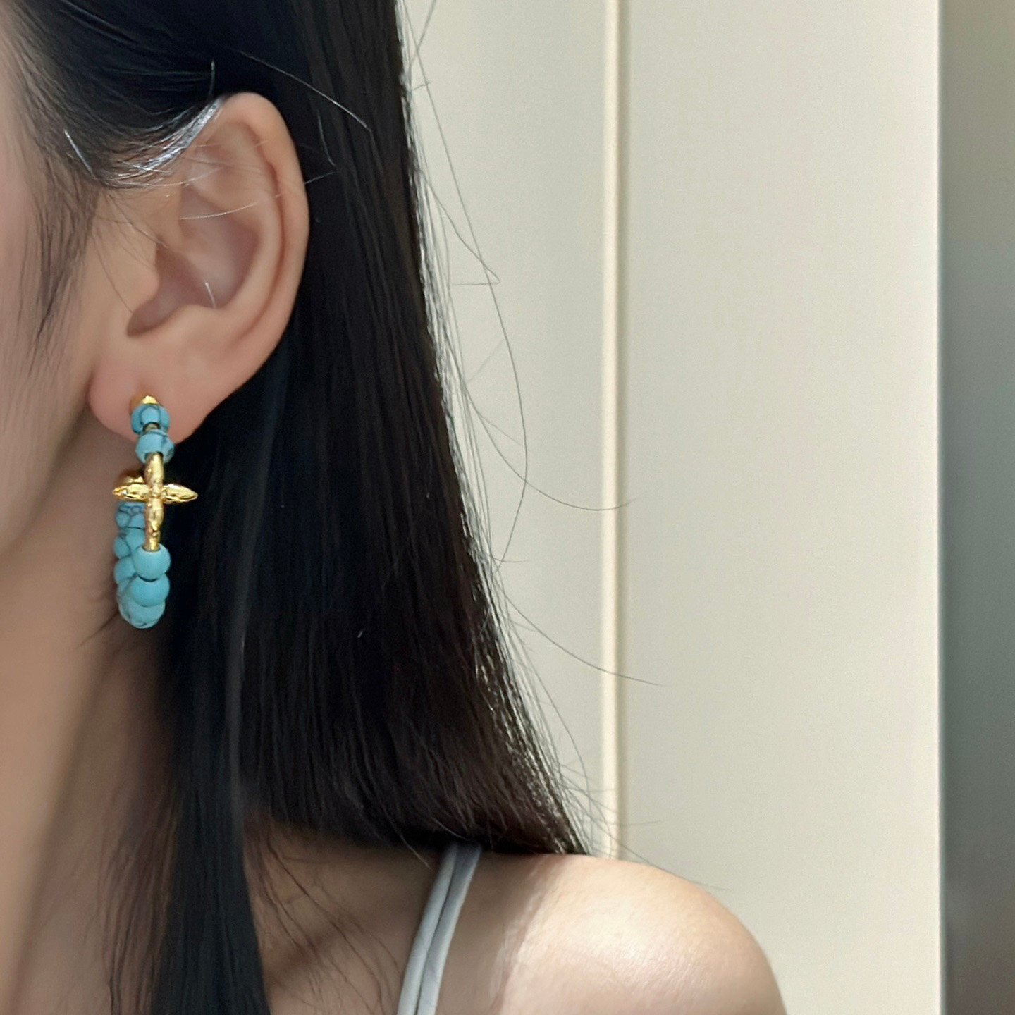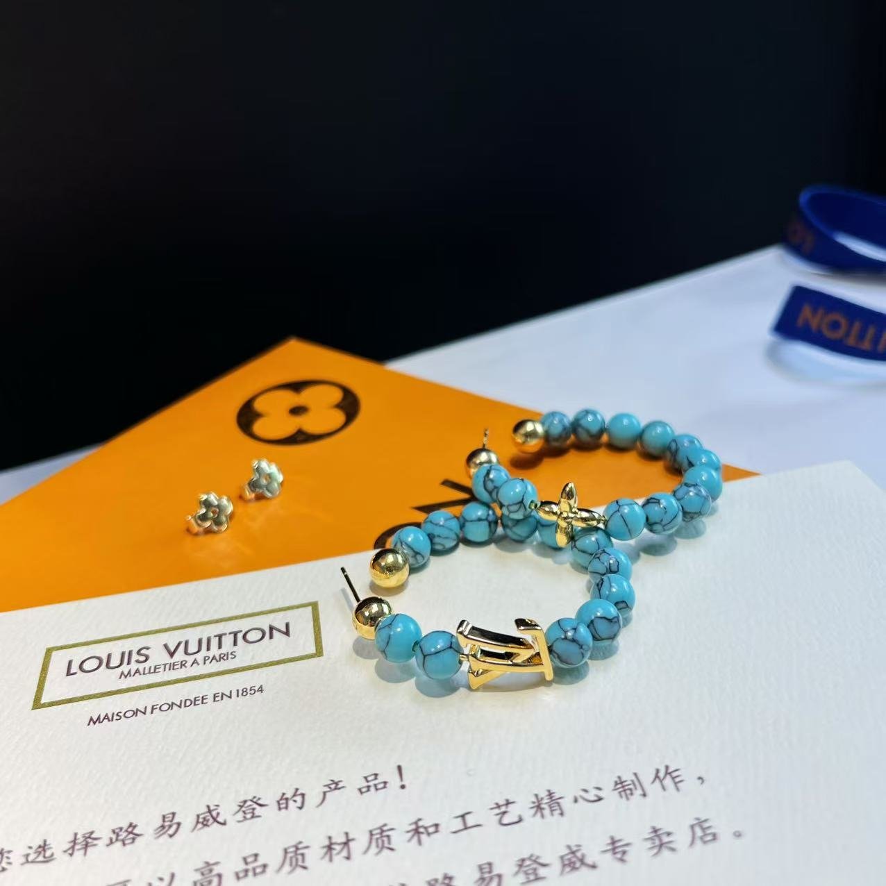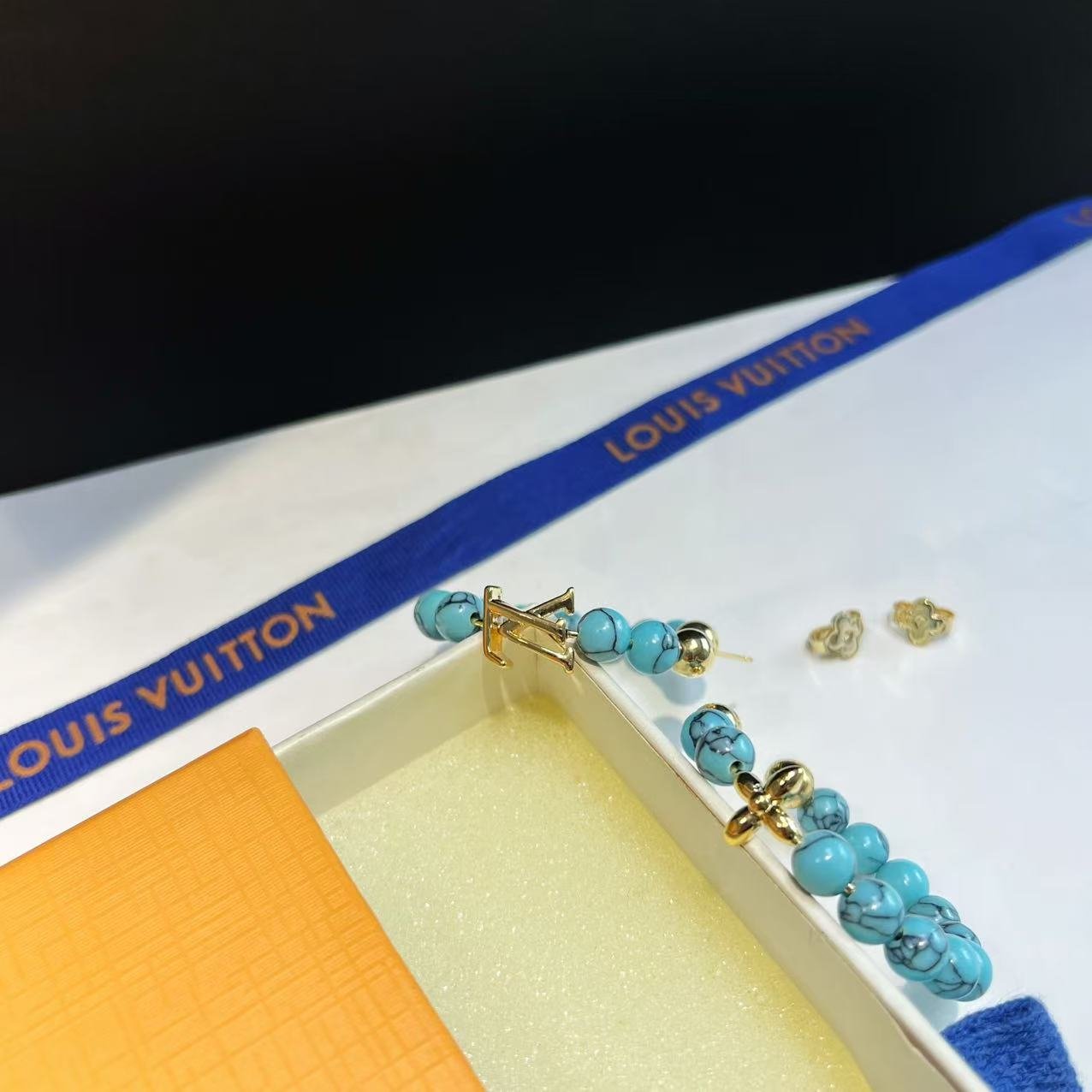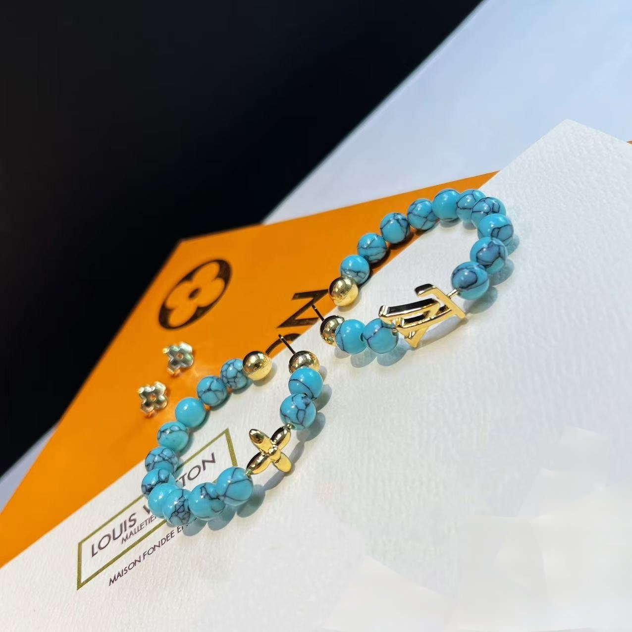 Be the first to review “Louis Vuitton Four-Leaf Clover and Monogram AB Style Turquoise Hoop Earrings”